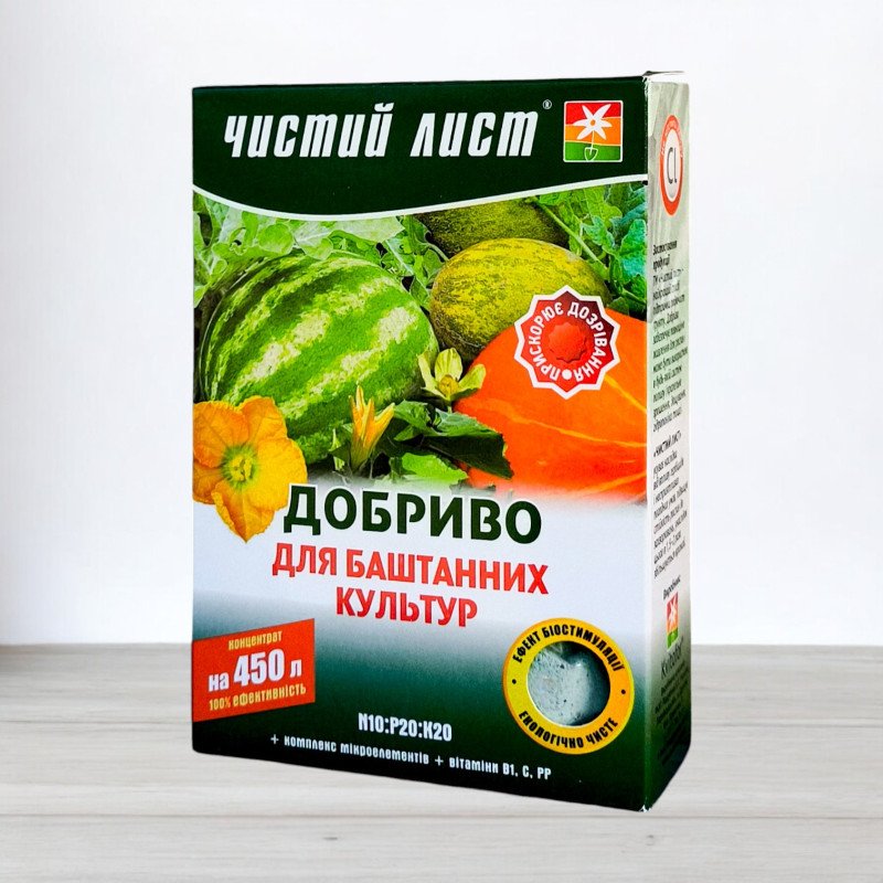 Професійно збалансоване добриво "Чистий Лист" забезпечить вашим баштанним культурам здорове зростання і багатий урожай!