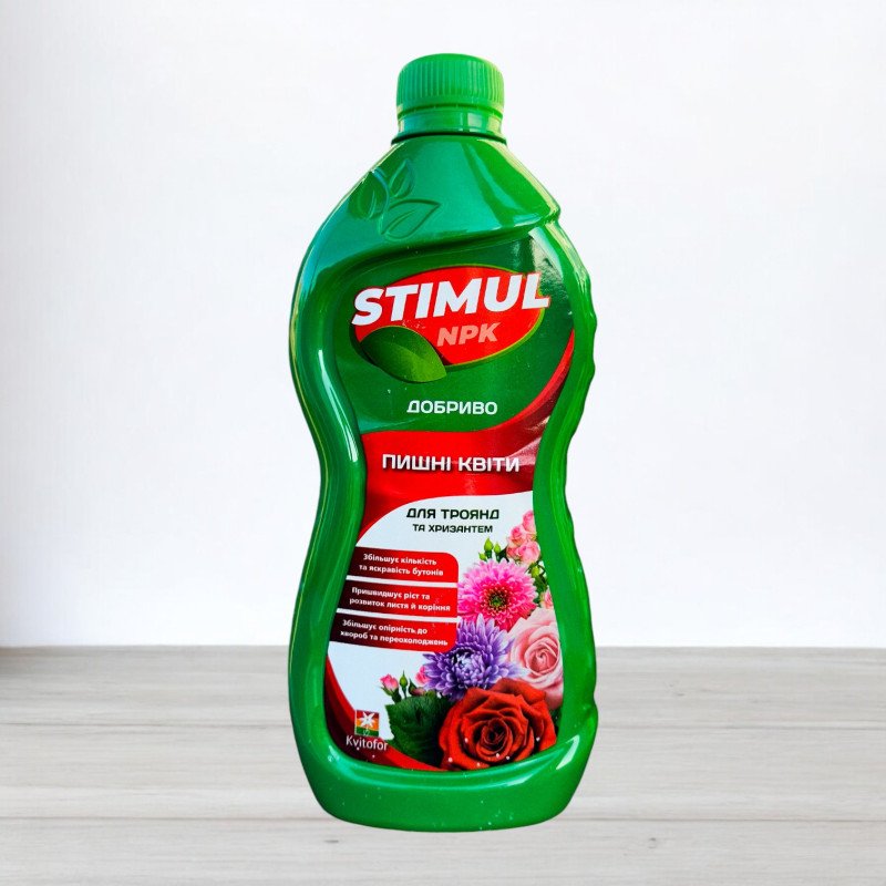 Застосовуйте Stimul NPK регулярно для досягнення найкращих результатів та насолоджуйтесь розкішним цвітінням ваших троянд та хризантем.