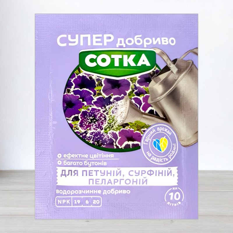 Добриво кристалічне Сотка 20г, для петуній, сурфіній, пеларгоній