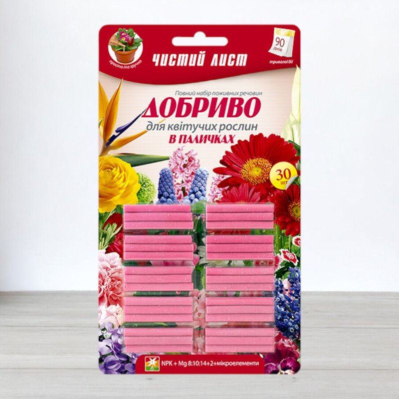 Добриво тривалої дії в паличках Чистий лист для квітучих, 30шт/уп