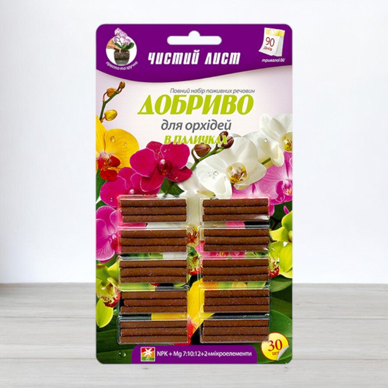 Добриво тривалої дії в паличках Чистий лист для орхідей, 30шт/уп