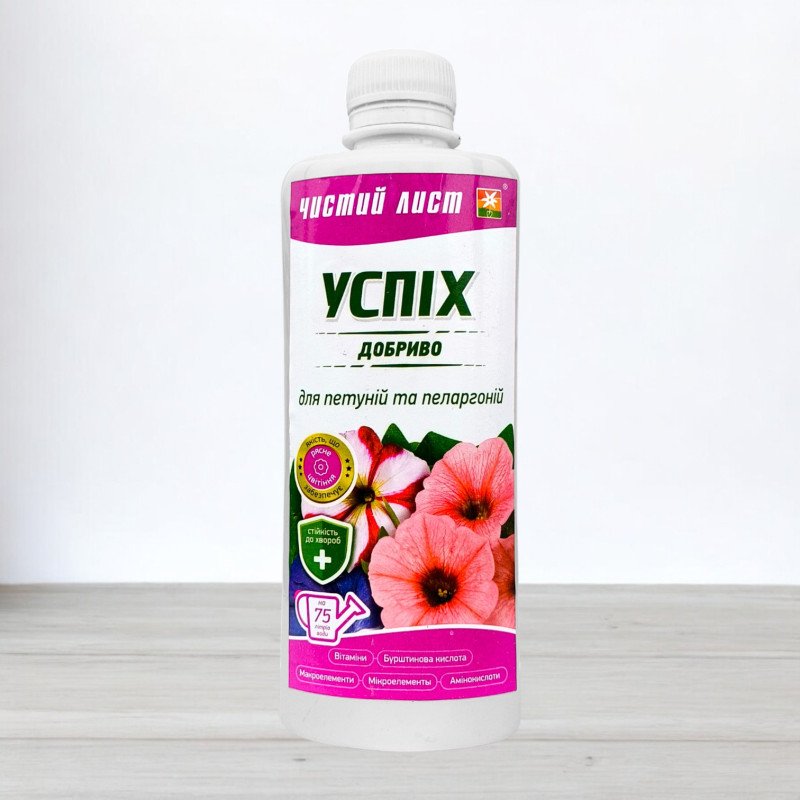 Підтримайте здоров'я та красу ваших петуній та пеларгоній з добривом Успіх Чистий Лист!