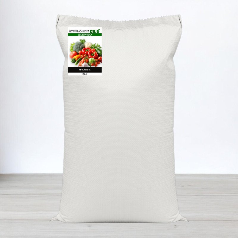 Упаковка: мішок 25 кг. Нітроамофоска - Азофоска гарантує ефективне та надійне харчування для ваших рослин, сприяючи їх здоровому зростанню та відмінному врожаю.