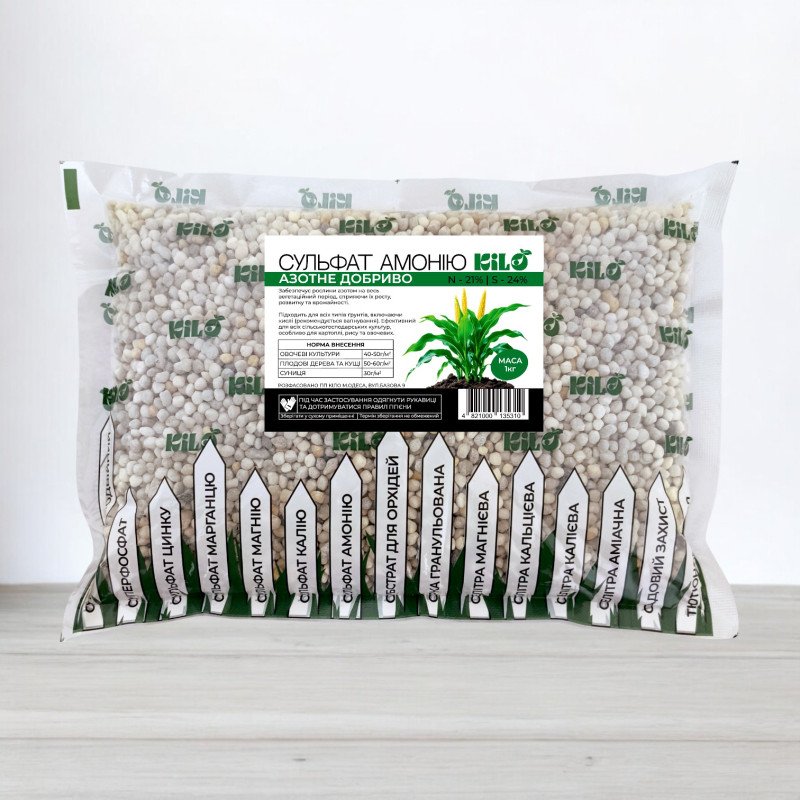 Сульфат амонію – це високоефективне мінеральне добриво, що містить 21% азоту та 24% сірки, представлене у зручній гранульованій формі. Це кристалічне сірковмісне добриво призначене для поліпшення поживних властивостей ґрунту та підвищення врожайності.