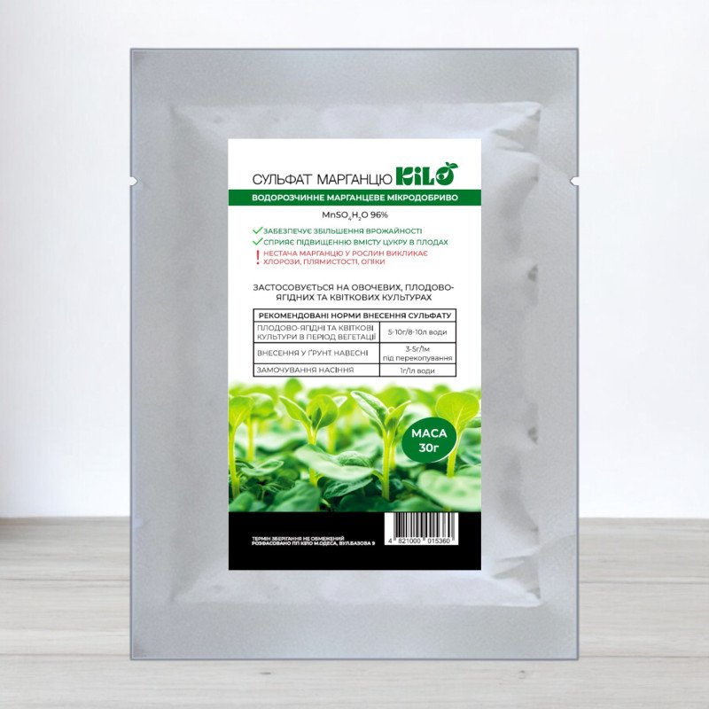 Сульфат марганцю - це ефективне мікродобрива, призначене для підживлення плодових, овочевих, ягідних та квіткових культур. Будучи важливим елементом для розвитку рослин, він сприяє їх здоровому зростанню та покращує врожайність.