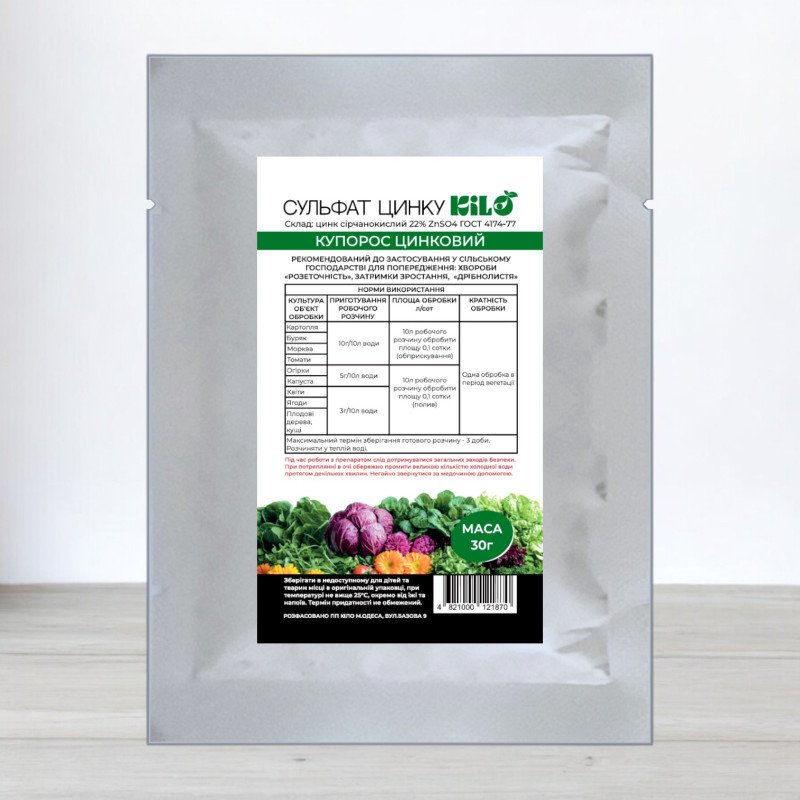 Зручна упаковка по 30 г ідеально підходить для невеликих ділянок та садів. Це добриво легко дозувати, а його застосування дозволяє досягти максимальних результатів без ризику передозування. Сульфат цинку підходить для різних типів ґрунтів, включаючи кислі та нейтральні, і може використовуватися як на відкритому ґрунті, так і в тепличних умовах.