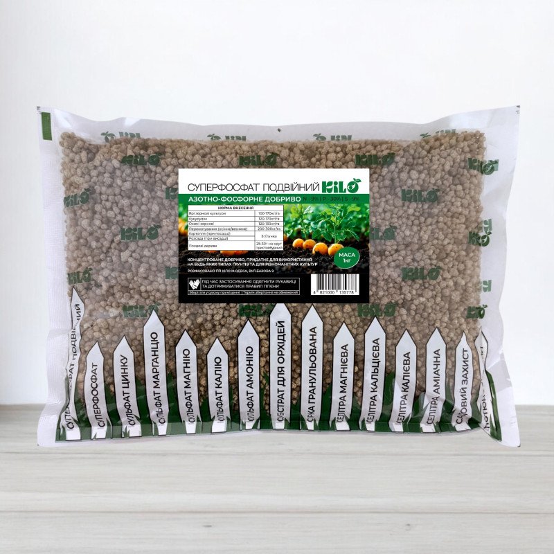 Суперфосфат подвійний – високоефективне мінеральне добриво, призначене для збагачення ґрунту фосфором, одним із основних елементів, необхідних для росту та розвитку рослин. Це добриво, що складається з легкозасвоюваних форм фосфору, активно використовується у сільському господарстві та садівництві для покращення якості та кількості врожаю.