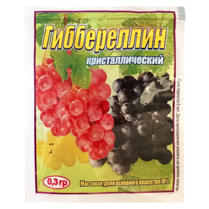 Гіббереллін є кристалічним порошком білого або жовтуватого кольору, практично без запаху. Він використовується для обробки різних культур, таких як цитрусові, виноград, вишня та ячмінь, збільшуючи їх зростання та врожайність на 30-50%.