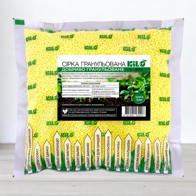Особливістю гранульованої сірки є її стійкість до вивітрювання та довговічність. Після внесення вона не втрачає своїх властивостей, забезпечуючи рослини необхідними поживними речовинами протягом тривалого часу. Зручна упаковка по 0,5 кг робить використання цього добрива доступним та економічним, що ідеально підходить для дачників, садівників та дрібних фермерів.