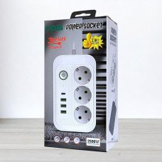 Мережевий фільтр з вимикачем Power Socket F015 на 3 розетки, 3 USB, 1 Type-C, 2500W, довжина 3м
