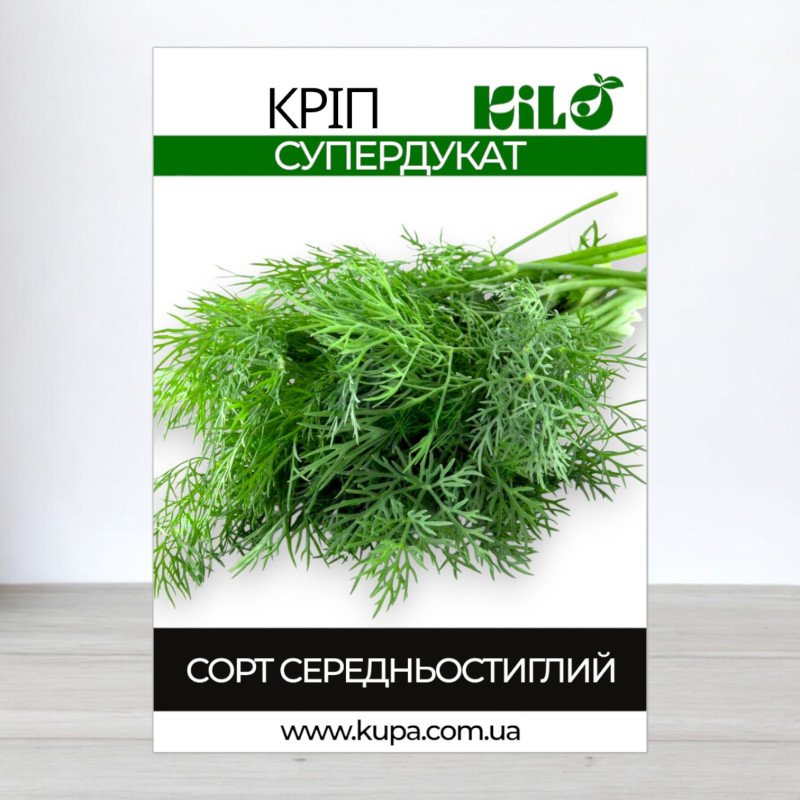 Догляд за кропом включає розпушення ґрунту, прополювання та регулярні поливи. Насіння кропу Супердукат забезпечить вас свіжою зеленню протягом усього сезону, а їх якість підтверджена 1-м класом.