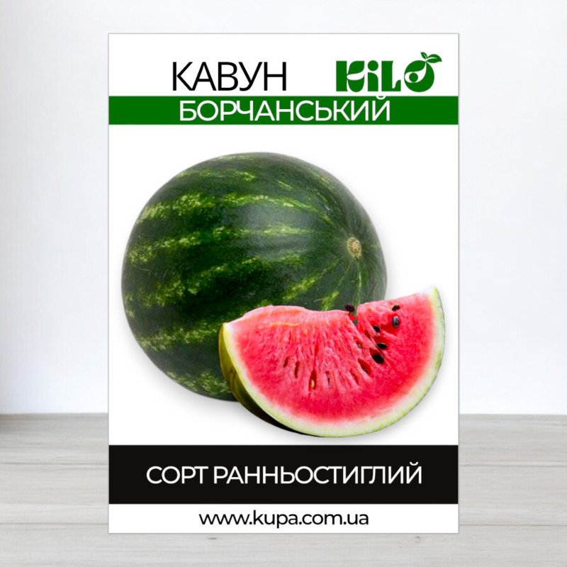 Вага упаковки: 500 г Упаковка: Пакет по 50 г Культура: Кавун ГМО: Ні Вибирайте насіння кавуна Борчанський для отримання раннього та смачного врожаю з відмінними якостями зберігання та транспортування!