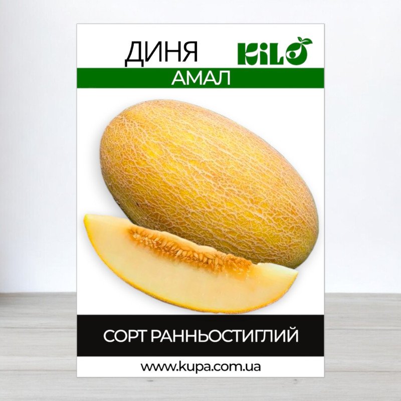 Насіння дині Амал - це ранньостиглий сорт дині типу "Ананас", відомий своєю високою врожайністю та відмінною транспортністю. Цей сорт цінується за традиційний смак та аромат, характерний для дині цього типу. Рослина має потужну вегетативною масою і формує плоди в рясній кількості. Плоди мають овальну форму та можуть досягати маси 2,5-3 кг, іноді перевищуючи 4 кг. Шкірка плода вкрита вираженою сіткою, а м'якоть біла і має насичений аромат. Сорт Амал стійкий до фузаріозу, сухої гнилі та хибної борошнистої роси.