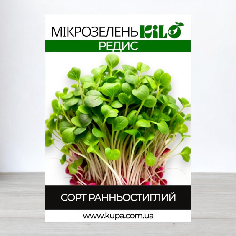 Збагатіть свої страви пікантним смаком із насінням мікрозелені редиски. Ці мікрозелені виділяються своїм пекучим, освіжаючим смаком і надають особливість як бутербродам, так і салатам, м'ясним та овочевим стравам. Багаті комплексом вітамінів, мінералів, ефірними маслами і такими важливими речовинами, як тіамін і рибофлавін, мікрозелені редиски покращують травлення і мають помірні жовчогінні та протинабрякові властивості.