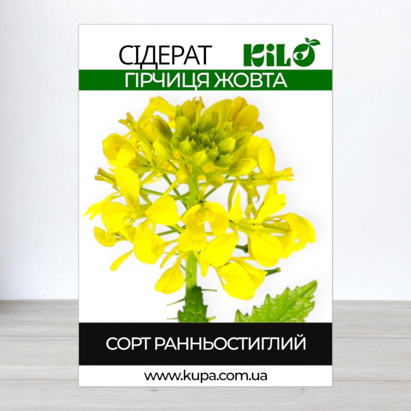 Насіння гірчиці жовтої – це однорічний сидерат, який ефективно використовується як зелене добриво. Відрізняється швидкою схожістю та стрімким зростанням, досягаючи зрілості лише за 8-10 тижнів. Ця культура активно вивільняє важкорозчинні фосфати і нормалізує кислотно-лужний баланс ґрунту, що сприяє його поліпшенню.