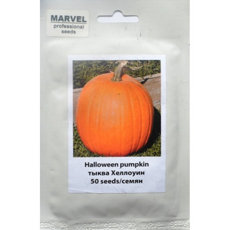 Гарбуз Хелловін Marvel – це великий сорт з яскравою помаранчевою шкіркою, що відрізняється щільною та соковитою м'якоттю, яка ідеально підходить для приготування різних страв, а також для прикраси на свята, такі як Хелловін. Особливість цього сорту в тому, що його плоди мають рівну та привабливу форму, що робить їх ідеальними для вирізування різних фігур, а також для створення тематичних композицій.