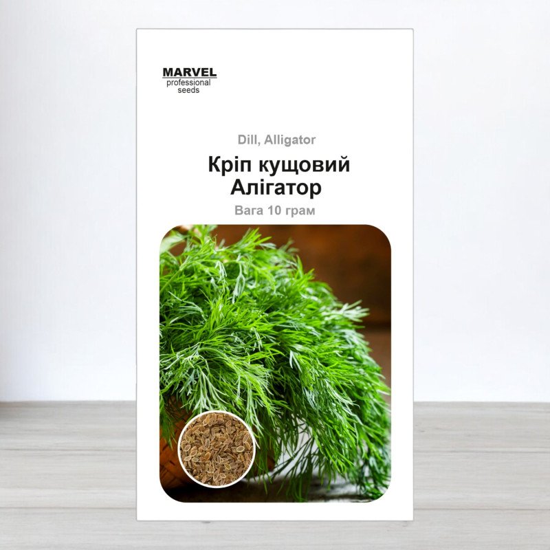 Насіння кропу Алігатор від компанії Marvel - це ідеальний вибір для тих, хто шукає ранній сорт кущового типу з відмінними характеристиками для отримання зелені. Цей сорт дозріває лише за 40-45 днів від появи сходів, забезпечуючи швидкий та якісний урожай.