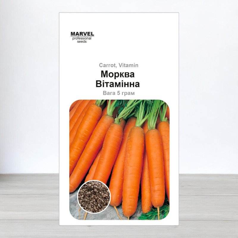 Насіння моркви «Вітамінна» від Marvel поставляється в упаковці по 5 грам, що робить їх зручним та економічним вибором для вирощування на будь-яких ділянках. Вибирайте цей сорт, щоб насолоджуватися корисною та смачною морквою протягом усього року.
