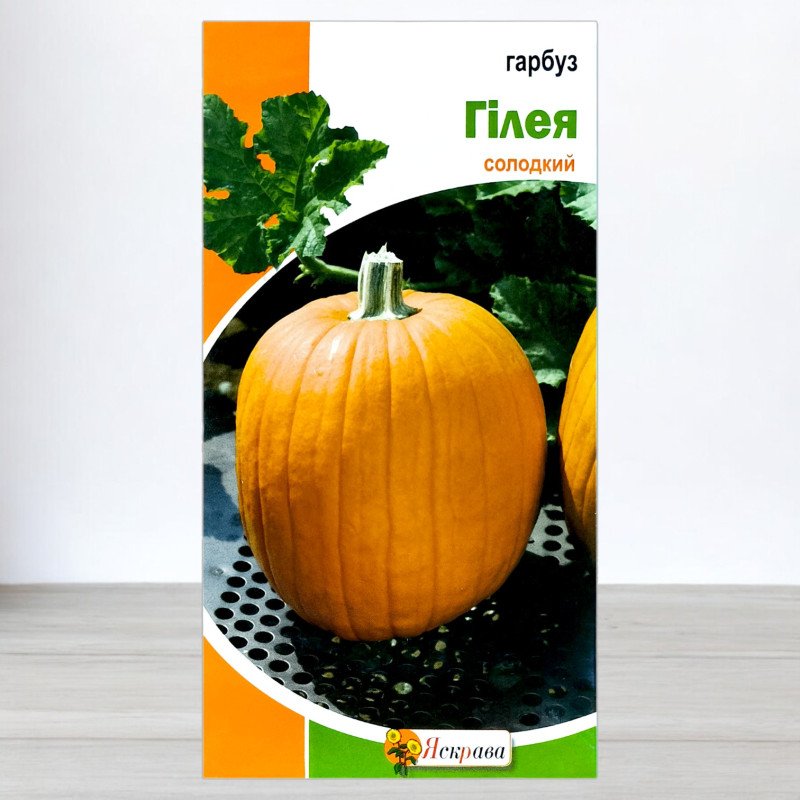 Насіння гарбуза Гілея від ТМ Яскрава — це середньостиглий сорт мускатного гарбуза універсального напрямку використання. Він ідеально підходить для вирощування без зрошення (на природних опадах) і при зрошенні, та призначений для переробки на дієтичні продукти харчування.