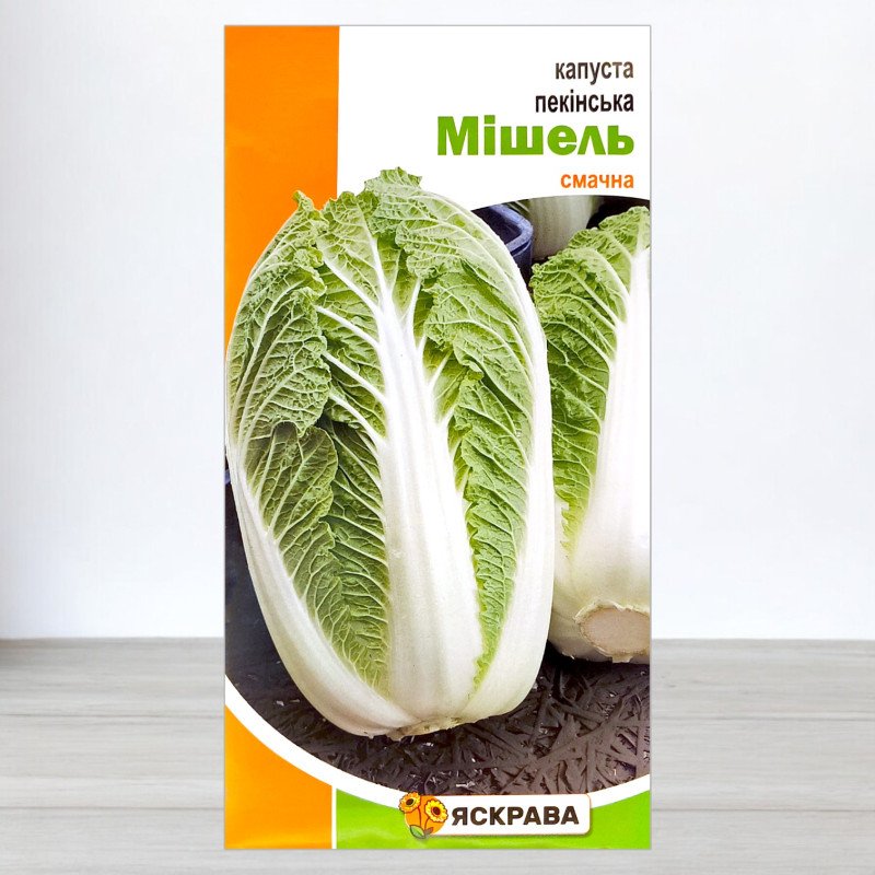 Характеристики головки та кулінарне застосування: Головка капусти «Мішель» має середньо-зелене забарвлення та циліндричну форму, її маса становить 1,5-2,5 кг. Вона вирізняється високими смаковими якостями і широко використовується в китайській, японській та середньоазіатській кухні. З неї готують свіжі салати, супи із висушених молодих рослин, а квашена капуста за спеціальним рецептом з гострим перцем і часником має незвичайний смак. Якість цього насіння від ТМ Яскрава підтверджується позитивними відгуками.
