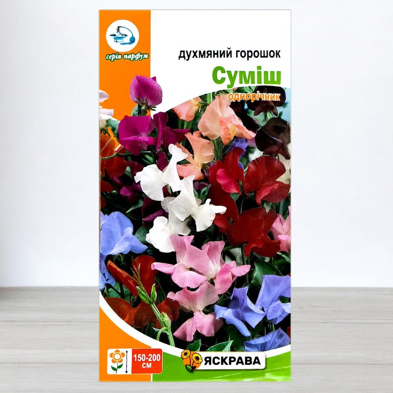 Додайте яскраві акценти та чарівний аромат у ваш сад за допомогою насіння запашного горошку Суміш від ТМ Яскрава. Ця однорічна культура порадує вас різноманітністю відтінків та чудовим ароматом, роблячи будь-який простір більш живим та привабливим.