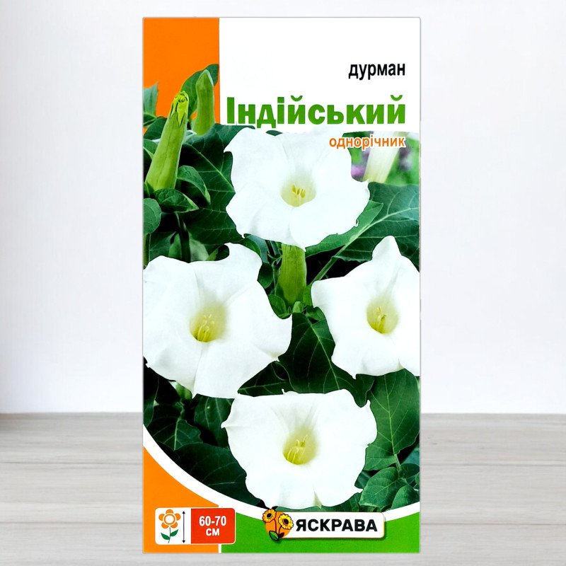Наповніть ваш сад елегантністю та вишуканим ароматом із насінням дурману Індійського Білого від ТМ Яскрава. Цей ефектний однорічник привнесе нотки витонченої краси та неповторного аромату у будь-який простір.