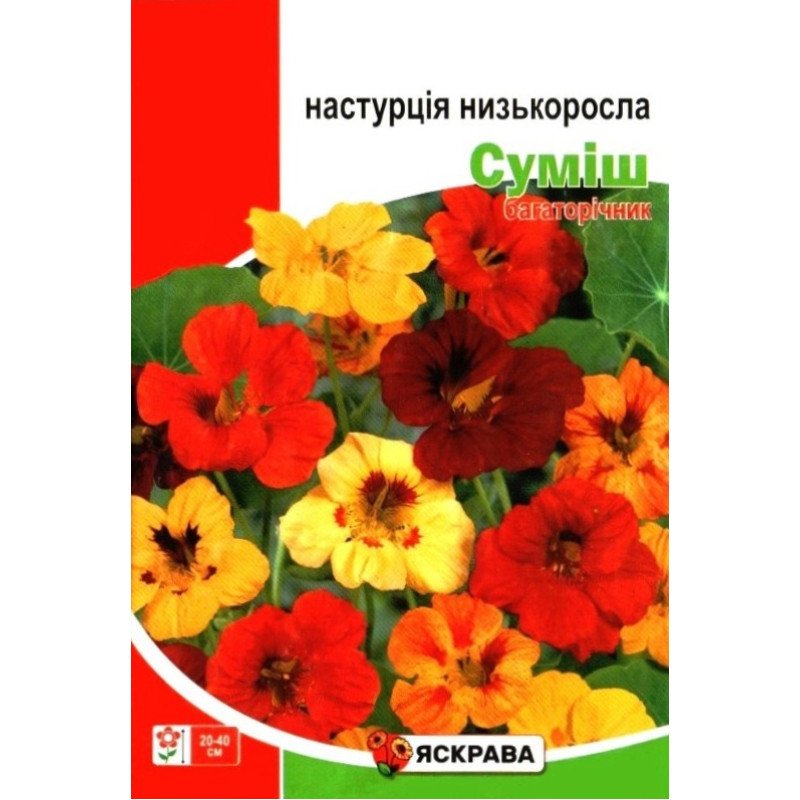 Настурція низькоросла Суміш від бренду Яскрава - це ідеальний вибір для створення яскравих та ароматних квіткових композицій у вашому саду. Ці однорічні рослини з компактним зростанням та різноманітністю кольорових відтінків перетворять будь-яку клумбу, бордюр або балконну скриньку.