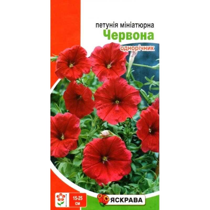 Створіть яскраві акценти у вашому саду або на балконі з насінням мініатюрної петунії Червоної від ТМ Яскрава. Ця однорічна петунія привертає увагу своїм насиченим темно-червоним кольором і стане чудовою прикрасою для клумб, вазонів та квітників.