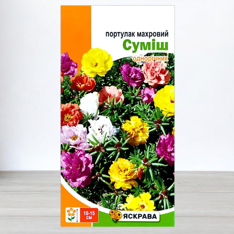 Портулак Махрова Суміш від ТМ Яскрава - це ідеальний вибір для створення яскравих килимів на вашому саду або балконі. Ця однорічна культура захоплює махровими квітками, які радуватимуть вас із червня по жовтень. Завдяки різноманітності відтінків – від червоного до пурпурового та жовтого – ви зможете створити приголомшливі квіткові композиції, які стануть окрасою будь-якого куточка.