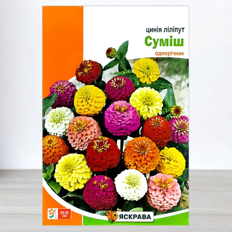 Змініть ваш сад за допомогою насіння цинії Ліліпут Суміші від бренду Яскрава. Цей однорічник, що відноситься до сімейства айстрових, зачарує вас своїми великими махровими суцвіттями та насиченою палітрою квітів. Цінія Ліліпут Суміш – ідеальне рішення для створення яскравих квіткових композицій, які радуватимуть око з середини літа до осені.