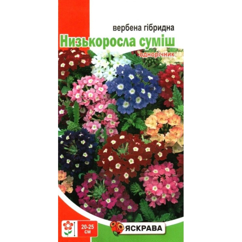 Збагатіть свій сад або балкон різноманітністю яскравих квітів із насінням низькорослої вербени гібридної від ТМ Яскрава. Ця суміш не тільки порадує вас багатством відтінків, від насиченого темно-синього до ніжного рожевого, але стане відмінним рішенням для створення яскравого і довговічного квітника.