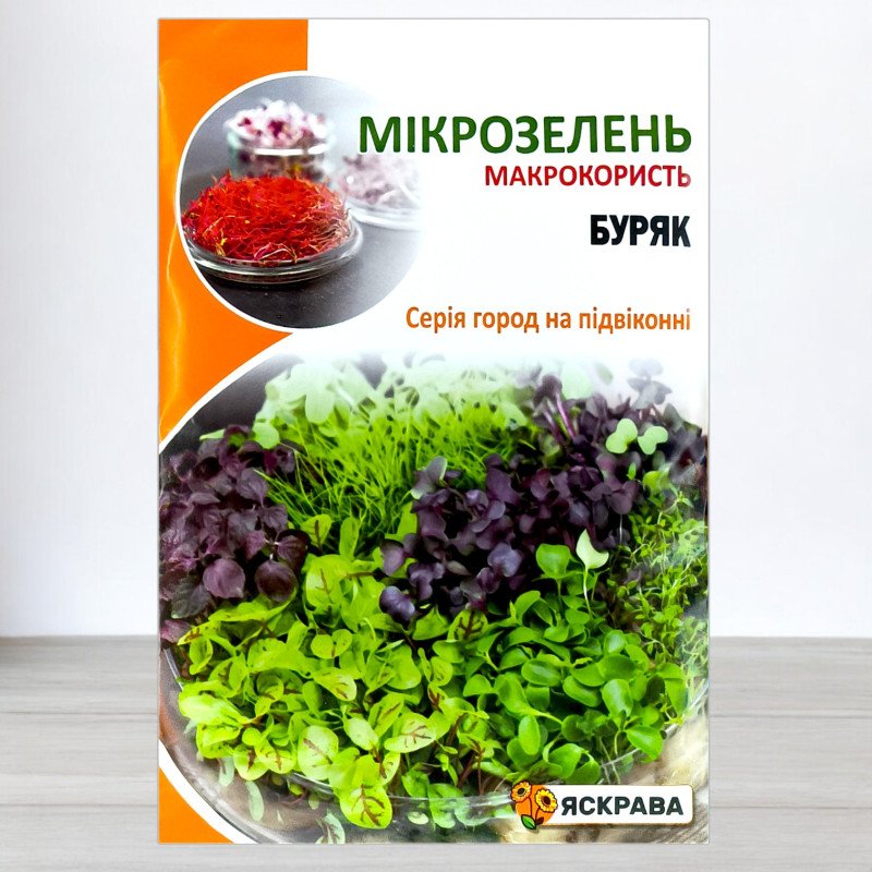 Змініть свої страви за допомогою насіння мікрозелені "Буряк" від ТМ Яскрава. Упаковка вагою 10 грам містить насіння, призначене для вирощування ароматної та поживної зелені з ефектним червоним листям.
