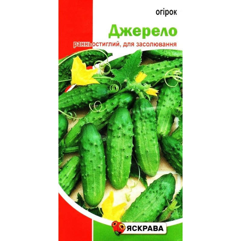 Огірок Джерело від ТМ Яскрава - це відмінний вибір для тих, хто цінує ранній урожай та чудові смакові якості. Цей сорт відрізняється високою продуктивністю та універсальністю, ідеально підходячи як для відкритих грядок, так і для теплиць.