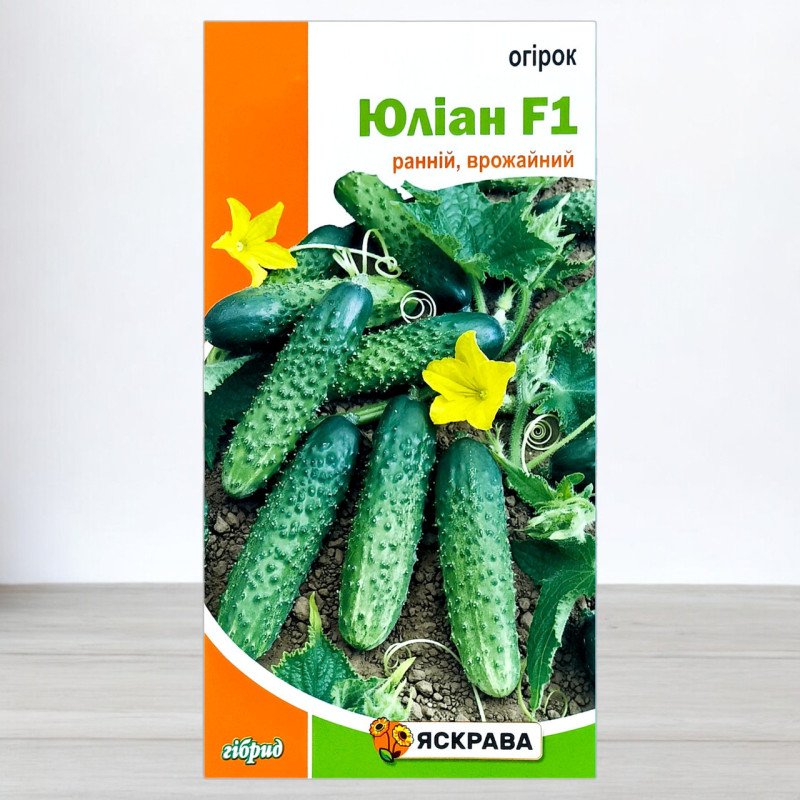 Насіння огірка Юліан F1 від ТМ Яскрава - це ранній гібрид, який чудово підходить для вирощування у відкритому ґрунті на всій території України. Цей сорт славиться своєю стійкістю та тривалим періодом плодоношення, що дозволяє збирати врожай до пізньої осені.
