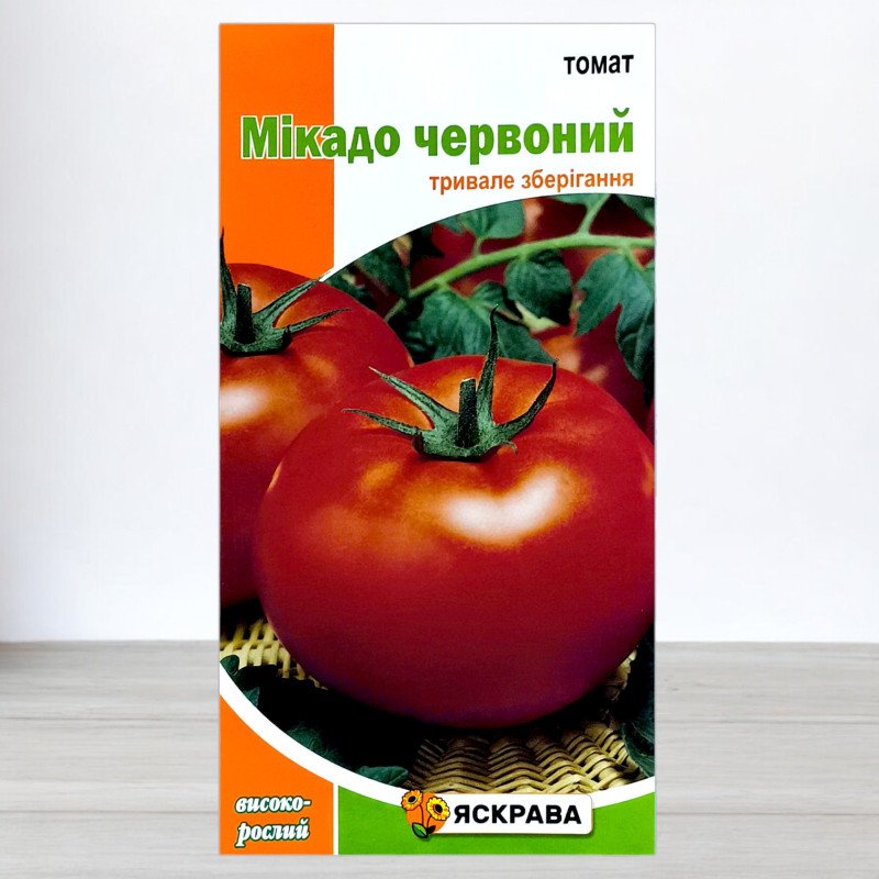 Насіння томату Мікадо Червоний від ТМ Яскрава - це ідеальний вибір для тих, хто хоче виростити великі та смачні плоди. Цей середньопізній сорт, що вимагає близько 120-130 днів від проростання до повного дозрівання, чудово підходить для відкритого ґрунту.