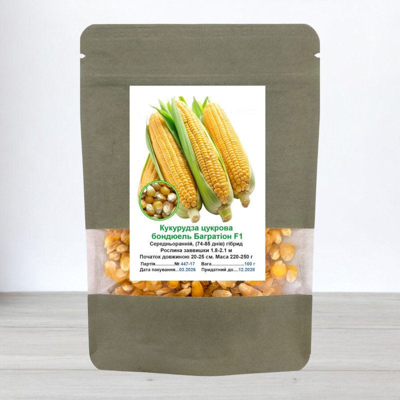 Вибирайте насіння кукурудзи Бондюель Багратіон F1 для вашого саду та забезпечте собі стабільний урожай солодкої та соковитої кукурудзи, яка стане чудовим доповненням до будь-якого столу.