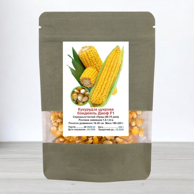 Це насіння гарантує високоякісний урожай з відмінними смаковими характеристиками. Бондюель Джоф F1 – це надійний вибір для створення смачних та апетитних качанів кукурудзи.