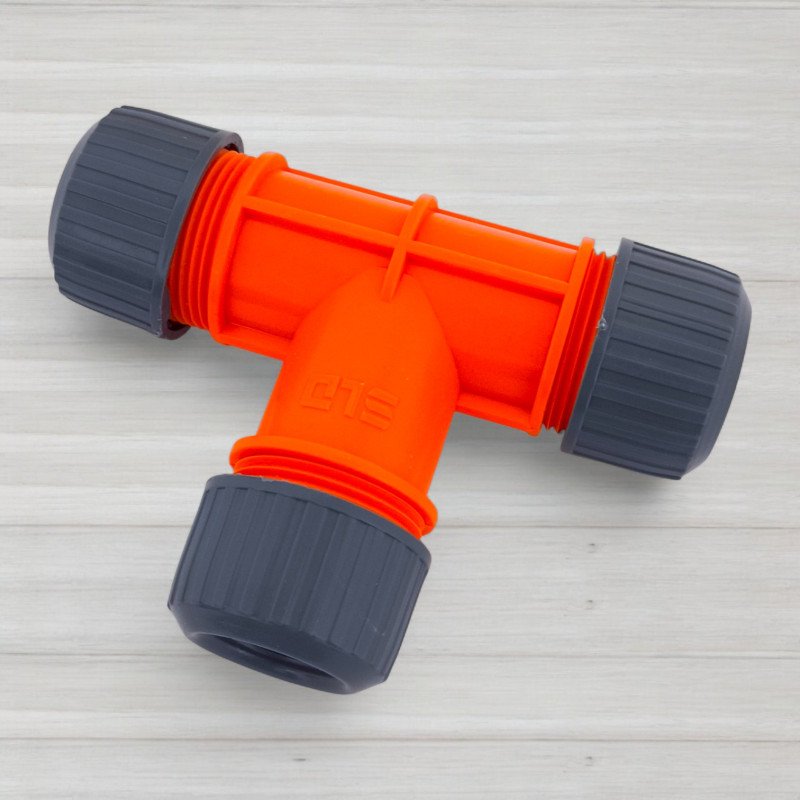 Конструкція цанги трійника розроблена з урахуванням вимог до довговічності та стійкості до зовнішніх впливів. Вона виготовлена з високоякісного полімерного матеріалу, який відрізняється міцністю, стійкістю до корозії та зношування. Сіра колірна гама робить виріб нейтральним та придатним для використання в будь-яких умовах.