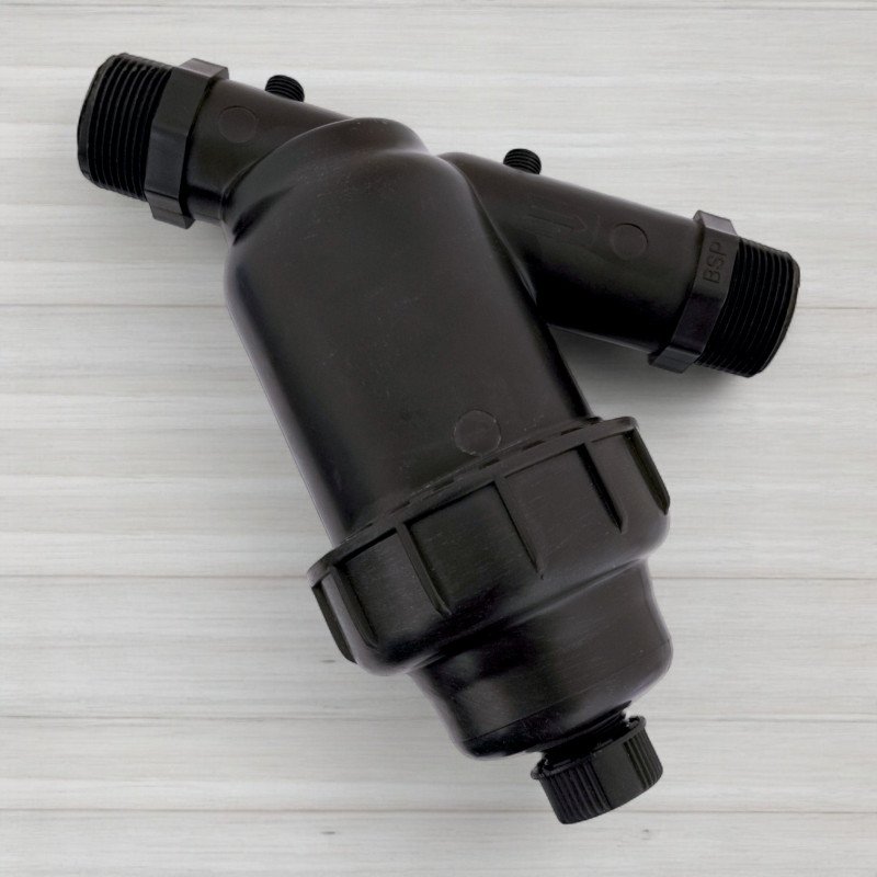 Основним елементом фільтра є сітка, яка ефективно затримує частинки бруду, пісок, мул та інші механічні забруднювачі, запобігаючи їх попаданню в систему та пошкодженню обладнання. Сітчаста структура фільтра має відмінну пропускну здатність, що дозволяє підтримувати високу ефективність роботи при значних обсягах води — до 10 м³/год. Це рішення ідеально підходить для систем з великою продуктивністю, де потрібний надійний захист від забруднень.