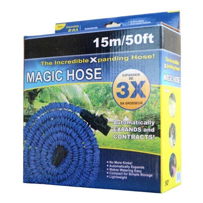 Шланг розтяжний Magic Hose 3Х з розпилювачем, 15 м – це інноваційне рішення для всіх, хто шукає зручний, практичний та надійний інструмент для поливу та прибирання. Він ідеально підійде як для дачі, так і для використання у господарстві. Завдяки унікальній технології, шланг розтягується втричі від вихідної довжини, забезпечуючи зручність у зберіганні та легкість в експлуатації.