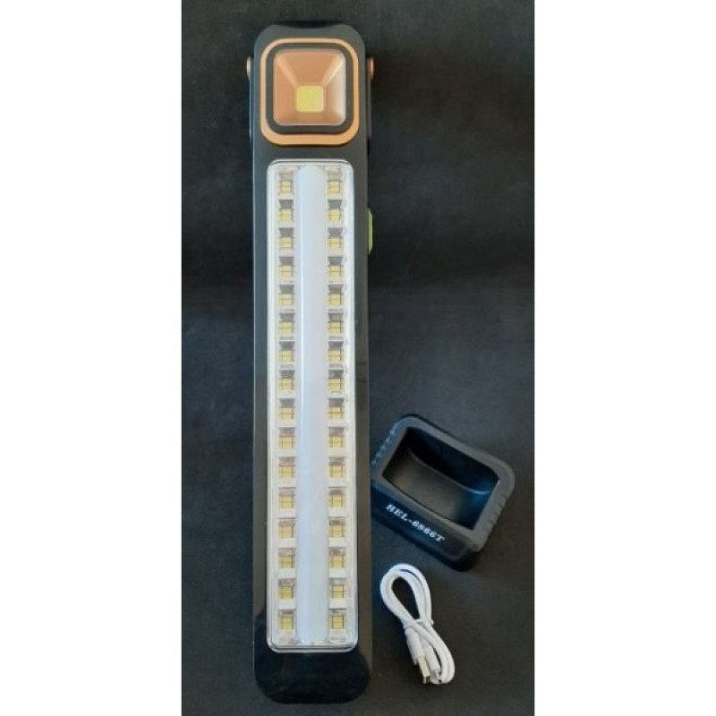 Ліхтар HEL-6866T - ідеальний вибір для надійного освітлення в будь-яких умовах. Цей акумуляторний ліхтар оснащений сонячною панеллю для автономного заряджання і підставкою для зручного розміщення.