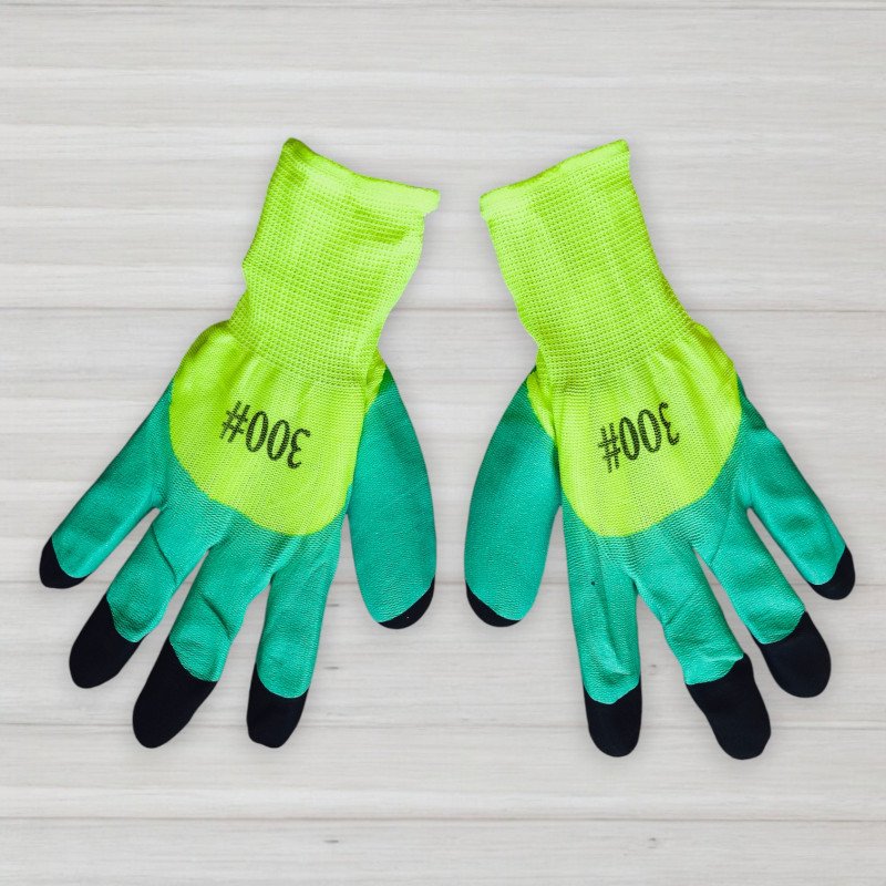 Рукавички нейлонові з частковим латексним покриттям та посиленими пальцями, зелені