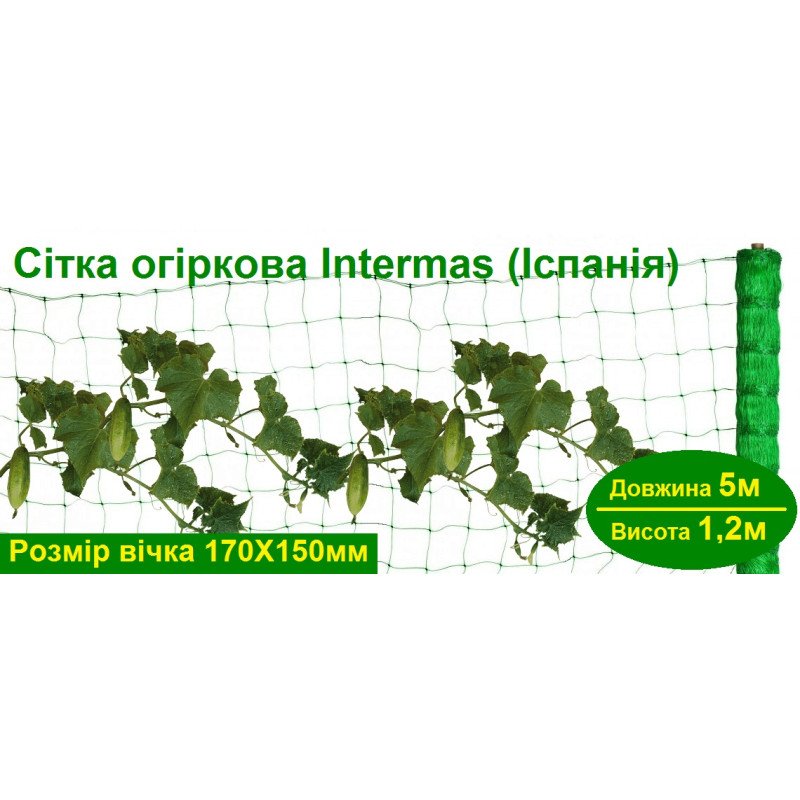 Сітка огіркова Intermas – надійне рішення для вашого саду, що забезпечує високу врожайність та комфорт у догляді за рослинами.
