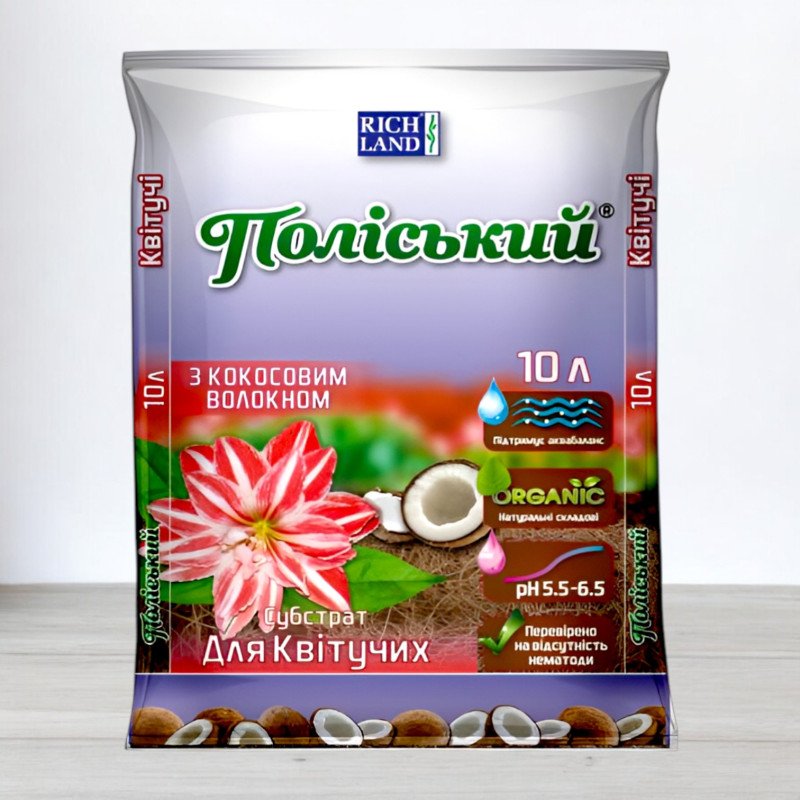 Субстрат Поліський для квітучих з кокосовим волокном, 10л