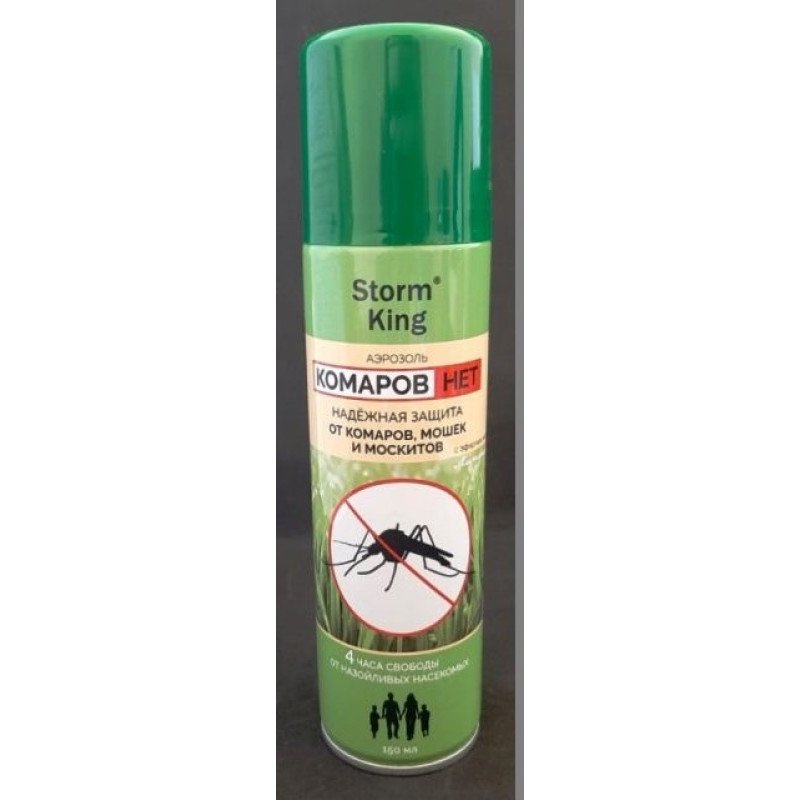 Захистіть себе від набридливих комарів та комах з аерозолем Storm King "Комарів Ні". Цей ефективний аерозоль в упаковці об'ємом 150 мл розроблений для створення надійного бар'єру від комарів, забезпечуючи довгостроковий захист у будь-яких умовах.