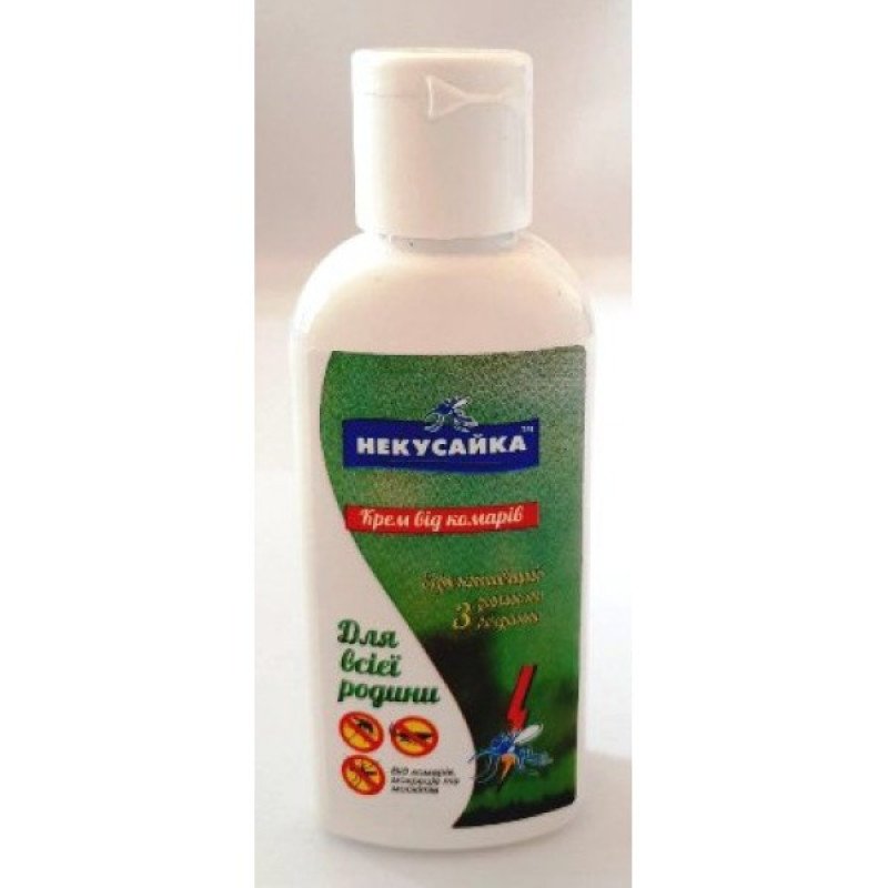 Крем-репелент Некусайка – це надійний засіб для захисту всієї родини від укусів комарів, мокреців та москітів. Завдяки своїй унікальній формулі, крем не тільки захищає від комах, але й має заспокійливу та пом'якшувальну дію на шкіру.