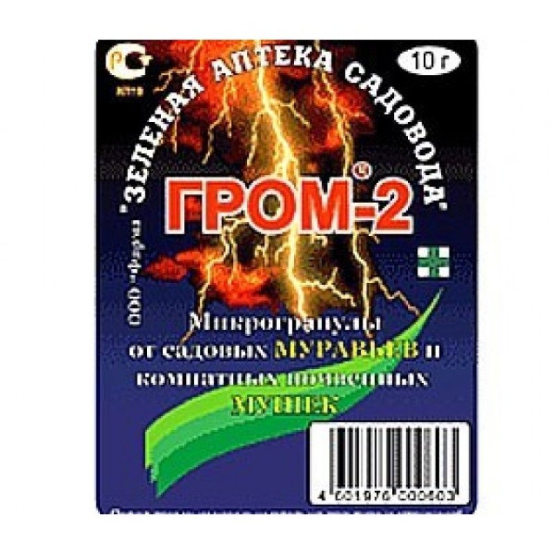 Інсектицид Гром-2 є ефективним засобом у боротьбі з мурахами та іншими дрібними комахами. У комплекті знаходяться мікрогранули, спеціально розроблені для знищення садових мурах та кімнатних мушок.