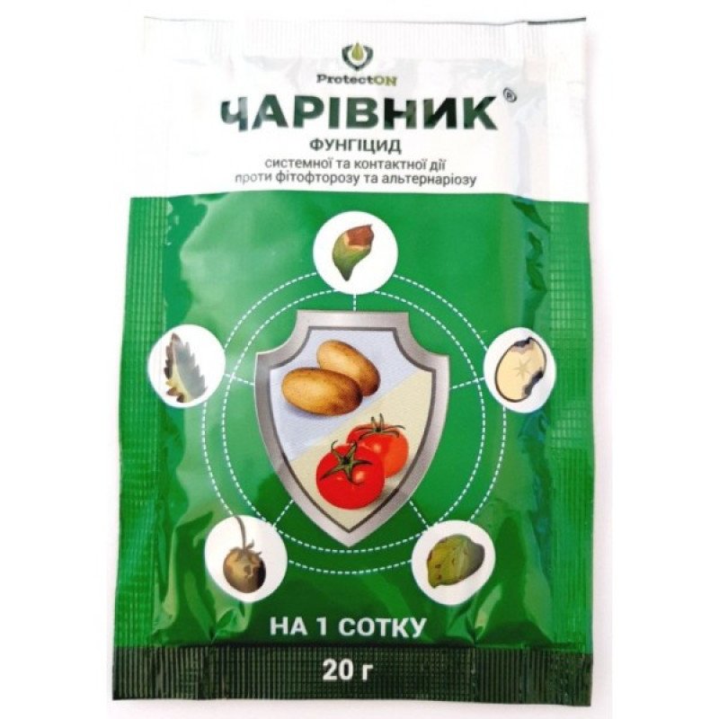 Фунгіцид Чарівник – це ефективний засіб для захисту рослин від грибкових та інфекційних захворювань, призначений для картоплі та томату. Маючи системно-контактну дію, Чарівник утворює на рослинах захисну плівку, яка забезпечує довготривалий захист і запобігає розвитку хвороб.