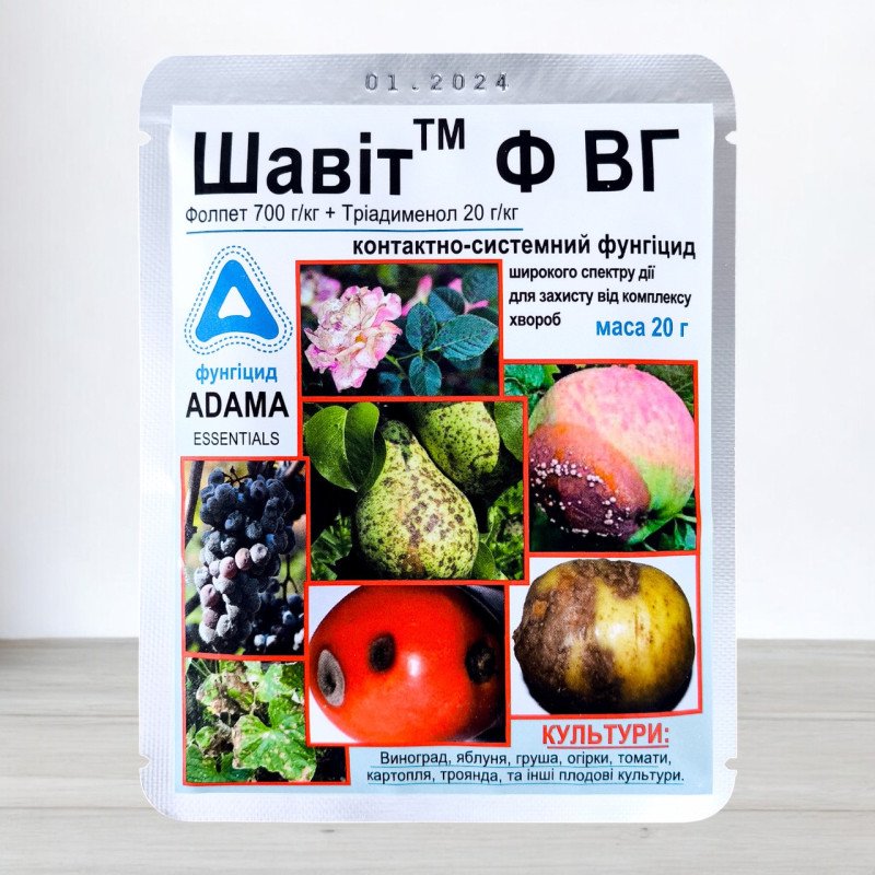 Фунгіцид Шавіт Ф є потужним контактно-системним засобом захисту рослин, призначений для боротьби з широким спектром грибкових захворювань. Підходить для обробки виноградників, томатів, картоплі, яблунь, груш, троянд, аґрусу та смородини.