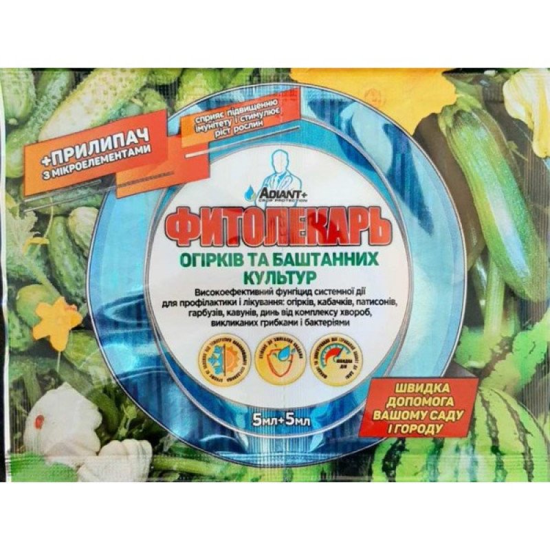Фунгіцид Фітолікар 5мл + Прилипач 5мл, Adiant+, для Огірків та Баштанних
